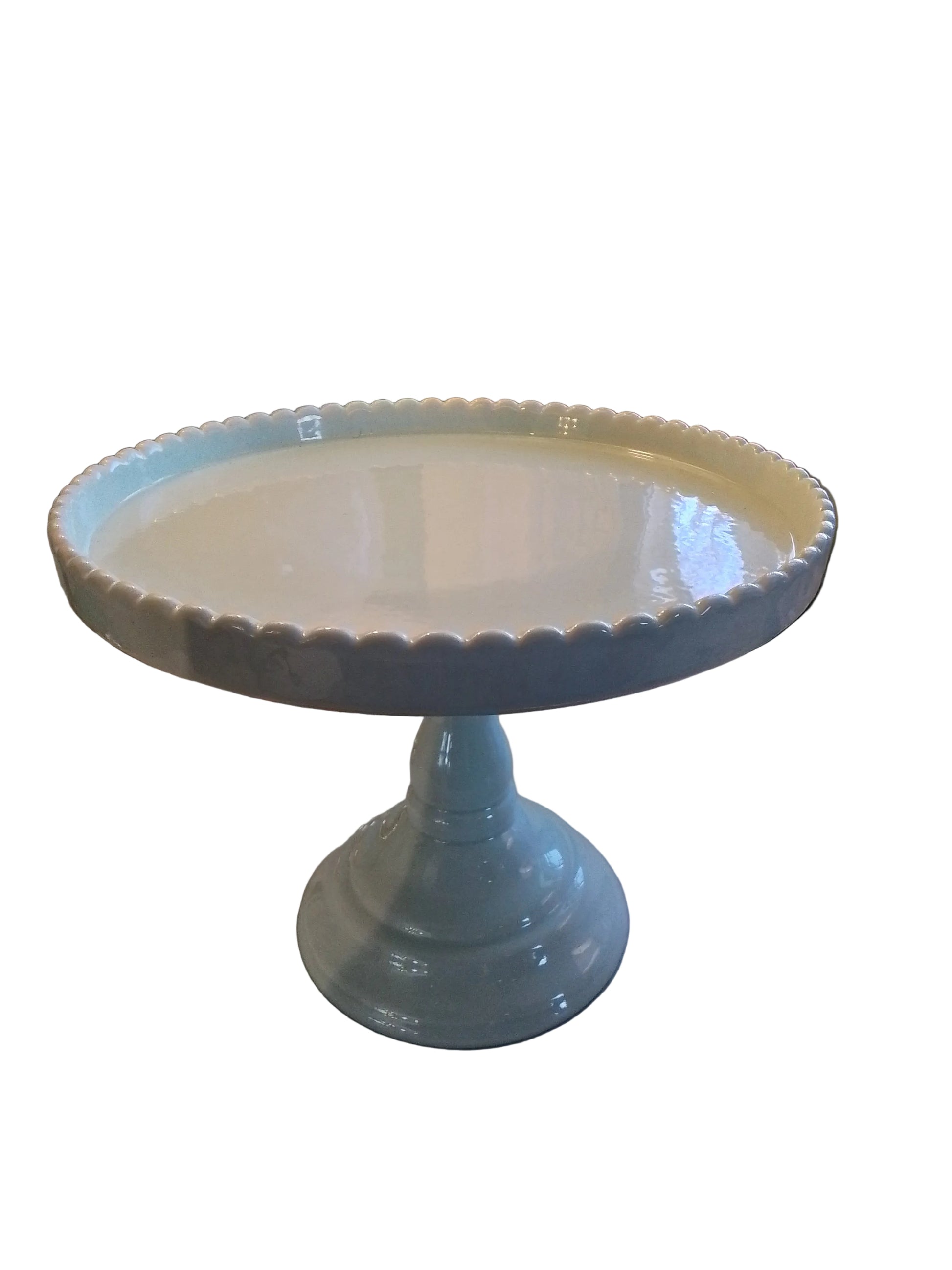 Mint green scalloped cake plate