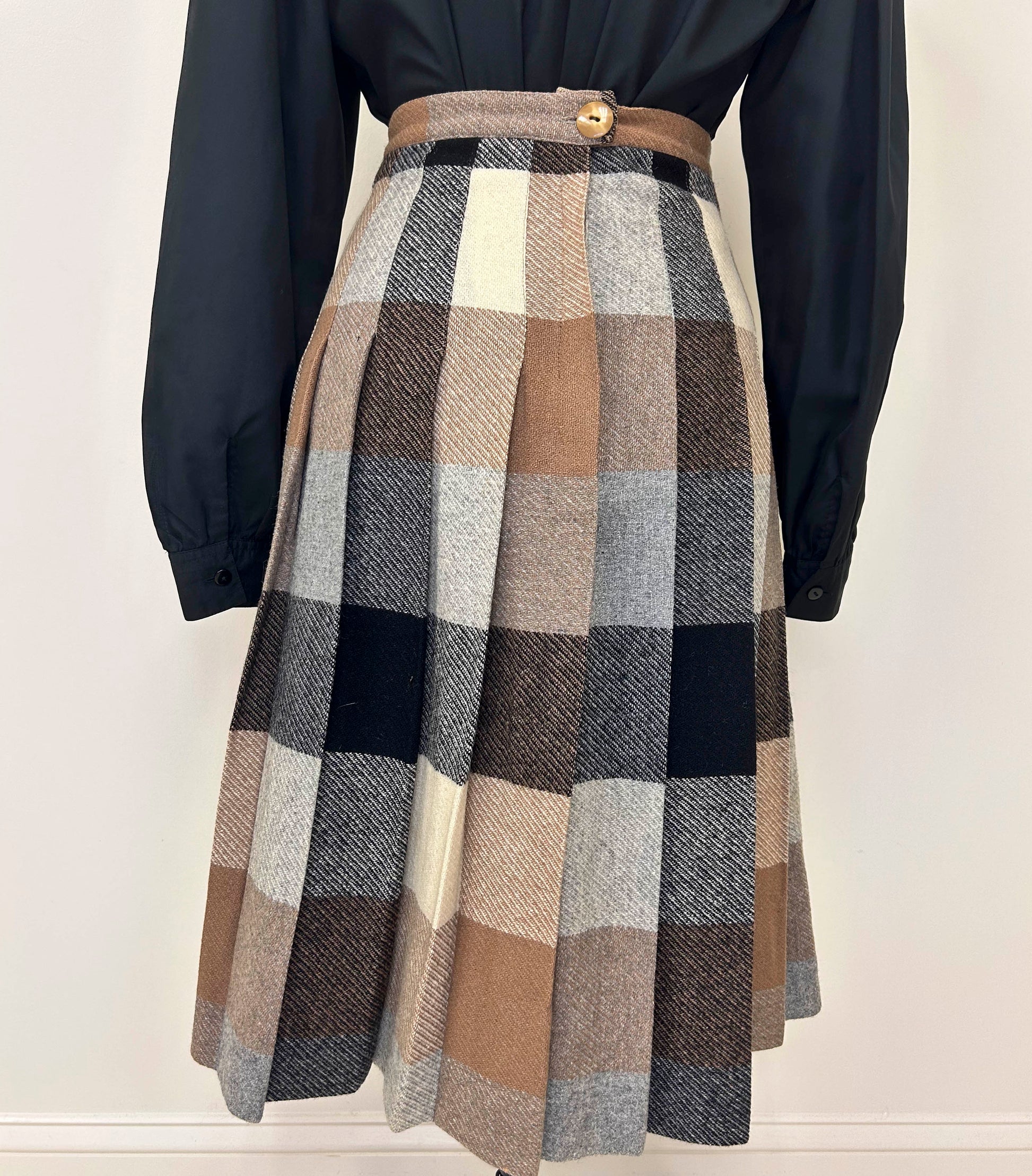 Madison Wardrobe Maker Vintage Brown Plaid Wool Midi Skirt