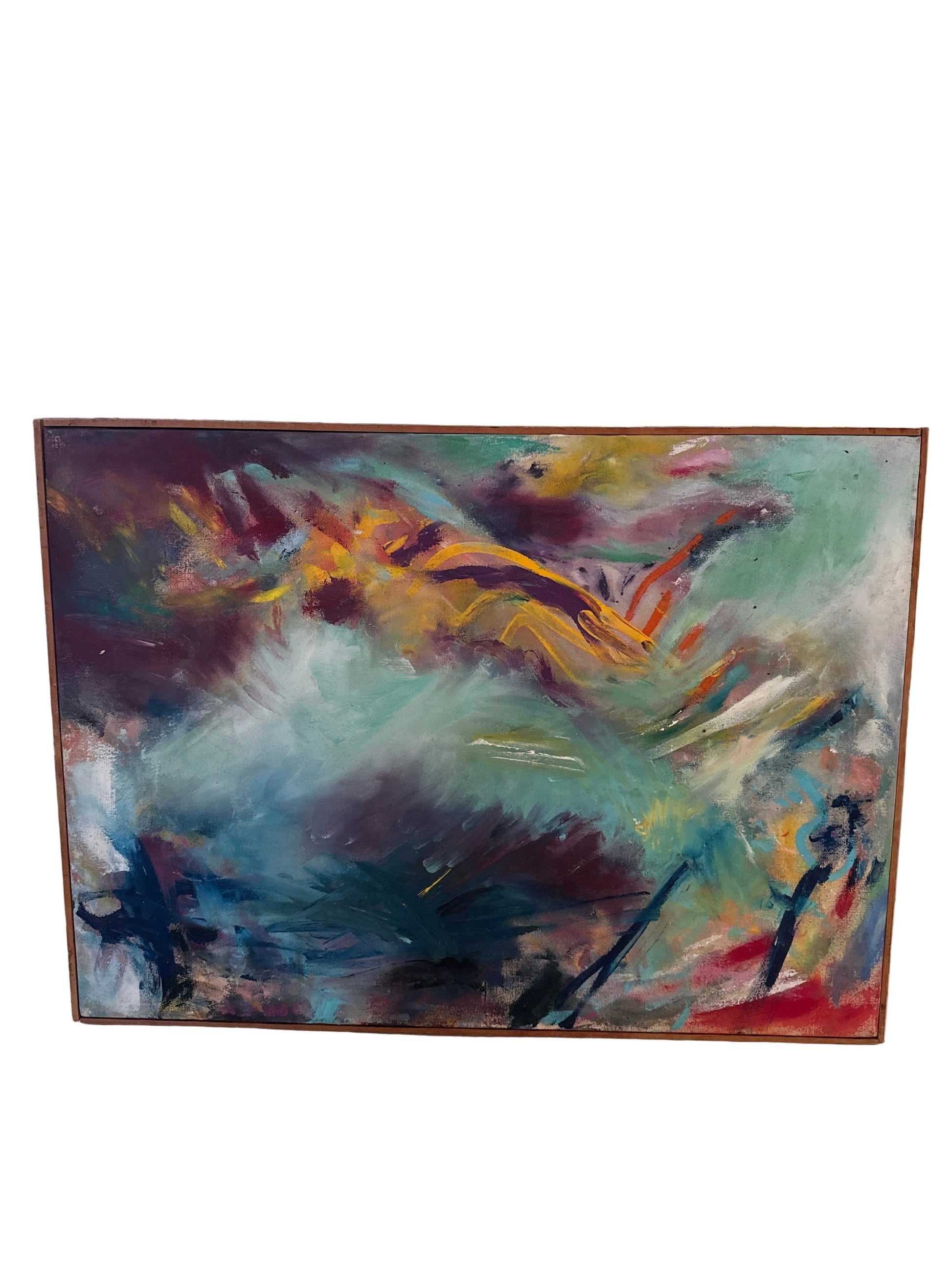 Vintage Mid Century Abstract Painting | Large Colorful Modernist Wall Art | 1970s